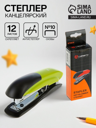 Степлер канцелярский № 10, Lamark Ulrich, до 12 листов, встроенный антистеплер, зелёный (арт. 2325230)