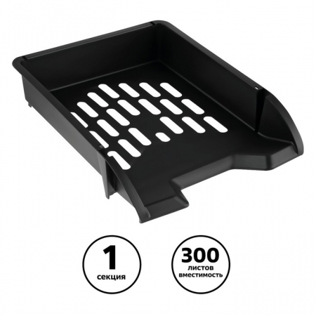 Лоток для бумаг горизонтальный, СТАММ «Лидер», черный (арт. 9600087)