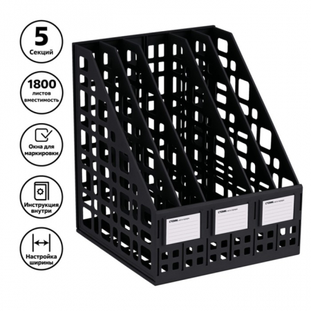Лоток для бумаг сборный, вертикальный, 5 отделений, чёрный (арт. 1889779)