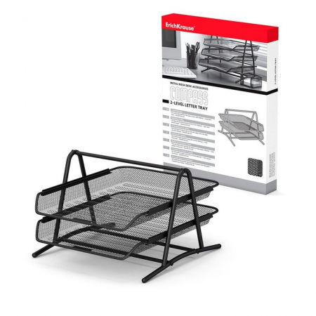 Лоток для бумаг горизонтальный 2-х уровневый, ErichKrause Compass Classic, металлическая сетка, чёрный (арт. 7576377)
