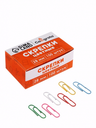 Скрепки 28 мм цветные в картонной коробке 100 штук (арт. 10771173)