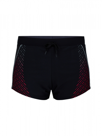 Мужские плавки из эластичного полотна на подкладе спереди. Подгиб и плоский шов по срезу ног. Широкая резинка на поясе и внешний шнурок для оптимальной посадки. Плавки однотонные с принтом на переднем полотнище.