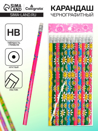 Карандаш чернографитный с ластиком Calligrata, твёрдость НВ, МИКС (арт. 1699943)