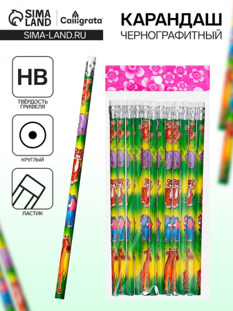 Карандаш чернографитный Calligrata «Зоопарк», НВ, с ластиком, корпус круглый (арт. 10200568)