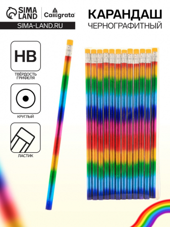 Карандаш чернографитный с ластиком «Голограмма» Calligrata, твёрдость НВ, МИКС (арт. 638658)
