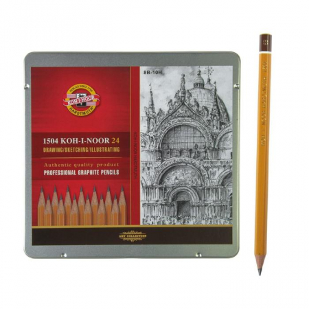 Набор карандашей чернографитных разной твердости 24 штуки Koh-i-Noor 1504 ART, 8В-10Н, в металлическом пенале (арт. 2474686)