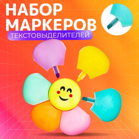 Набор маркеров текстовыделителей 6 цветов, Цветок, в пакете (арт. 10553725)