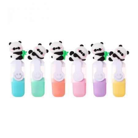 Набор маркеров текстовыделителей 6 штук 6 цветов, в пенале на молнии Панды (арт. 10577624)