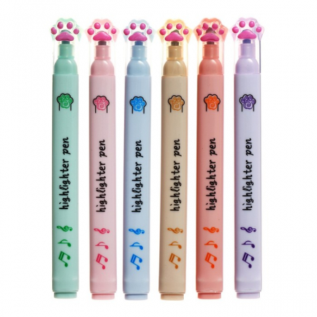 Набор маркеров-текстовыделителей 6 цветов, "Лапки с нотами" (арт. 9669269)