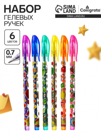 Набор гелевых ручек, 6 цветов, металлик, корпус с рисунком, в блистере на кнопке (арт. 893043)