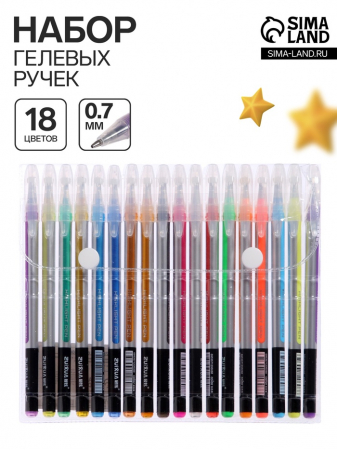 Набор гелевых ручек 18 цветов, корпус серебро в полоску, в блистере на кнопке (арт. 4788481)