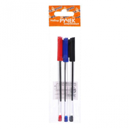 Набор ручек шариковых 3 цвета, стержень 1,0 мм, синий, красный, чёрный, корпус прозрачный (арт. 5477648)
