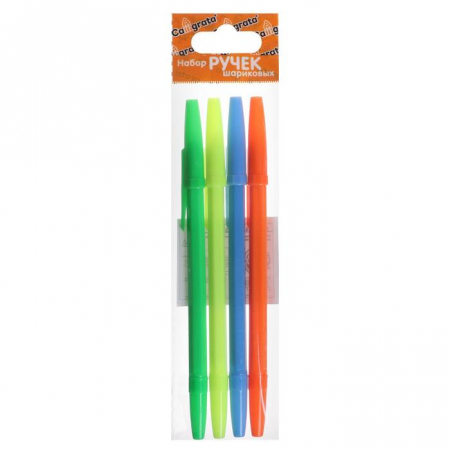 Набор ручек шариковых 4 штуки, стержень 0,7 мм синий, корпус НЕОН (арт. 5477664)