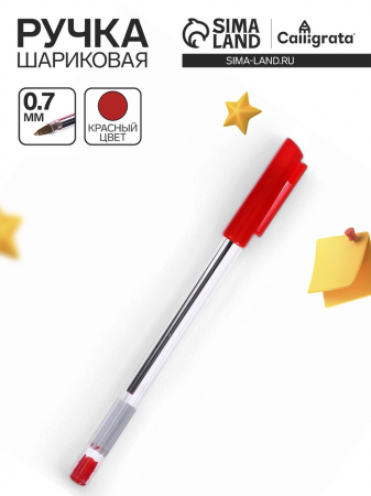 Ручка шариковая 0.7 мм, стержень красный, корпус прозрачный с красным колпачком (арт. 5449282)