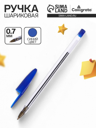 Ручка шариковая 0.7 мм, стержень синий, корпус прозрачный, колпачок синий (арт. 5449288)