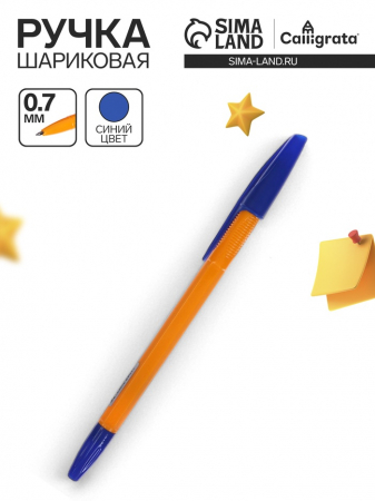 Ручка шариковая 0.7 мм, стержень синий, корпус оранжевый с синим колпачком (арт. 5449284)