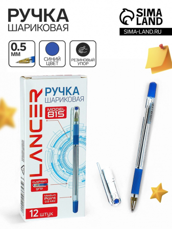 Ручка шариковая 0.5 мм, стержень синий, корпус прозрачный с резиновым держателем (арт. 1293653)