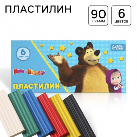 Пластилин 6 цветов, 90 г «Маша и медведь» (арт. 4349447)