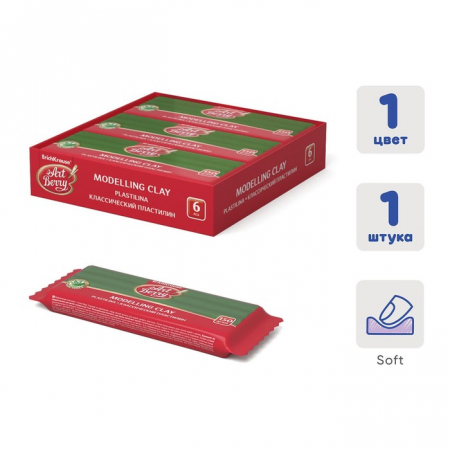 Пластилин зеленый, 150 г, ErichKrause, с алоэ вера, не прилипает к рукам и не пачкает одежду (арт. 4315653)