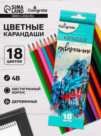 Карандаши Calligrata, цветные, акварельные, 18 цветов (арт. 3883846)