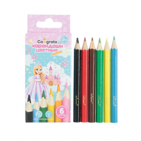 Карандаши Calligrata «Принцесса», цветные, 6 цветов, деревянные, шестигранные, мини (арт. 712035)
