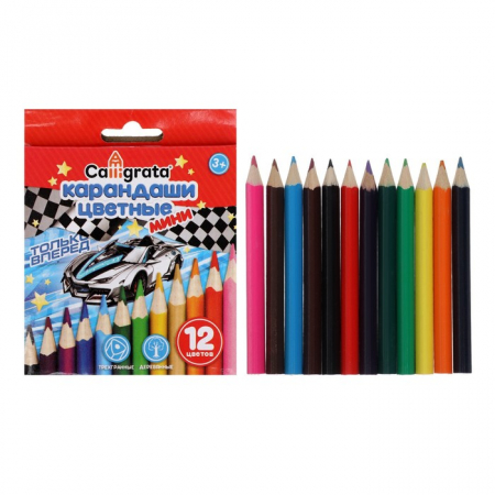 Карандаши Calligrata «Машинка», 12 цветов, деревянные, трёхгранные, мини (арт. 1014637)
