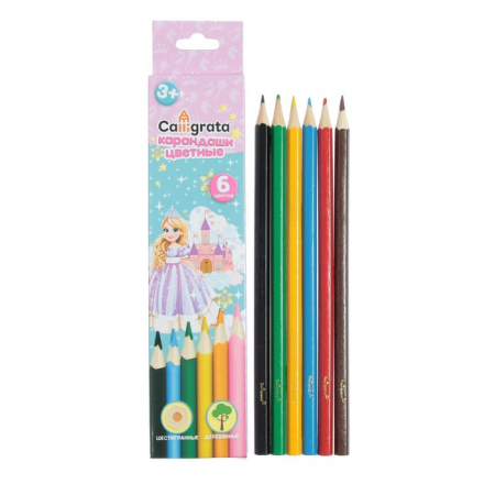 Карандаши Calligrata «Принцесса», цветные, 6 цветов, деревянные, шестигранные (арт. 712034)