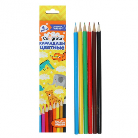 Карандаши Calligrata, цветные, 6 цветов, деревянные, трёхгранные (арт. 1014629)