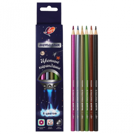 Карандаши цветные 6 цветов "Фантазия. Металлик", шестигранные (арт. 10308885)