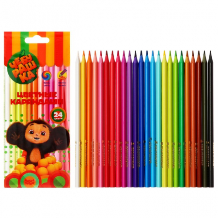 Карандаши цветные 24 цвета, пластиковые «Мульти-Пульти. Чебурашка», заточенные, европодвес (арт. 10336102)