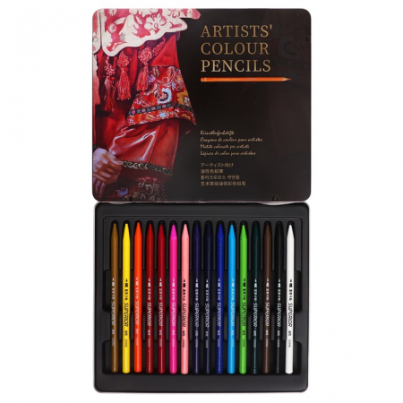 Карандаши цветные цельнографитные, в металлической коробке, 16 цветов (арт. 9919968)