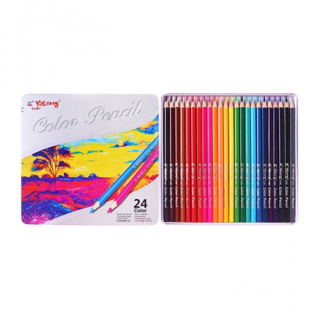 Карандаши 24 цвета, в металл пенале, треугольные, деревянные, Пейзаж МИКС (арт. 10553281)
