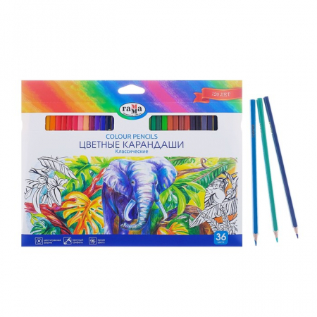 Карандаши цветные 36 цветов «Гамма. Классические», шестигранные, d=2.6 мм, картонная упаковка, европодвес 050918_05 (арт. 4284407)