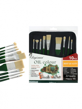 Набор кистей щетина 10 штук, в пенале на молнии (арт. 7711354)