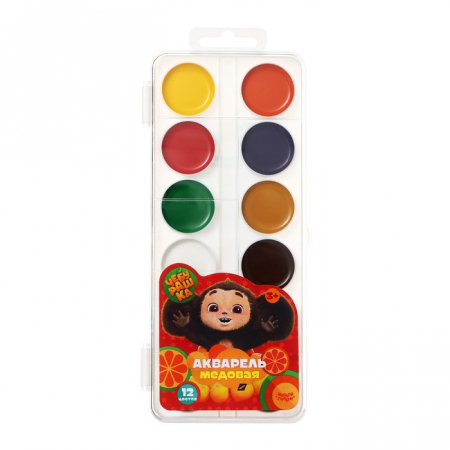 Акварель 12 цветов Мульти-Пульти "Чебурашка", медовая, без кисти, пластик, европодвес (арт. 9838509)