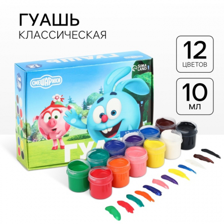 Гуашь 12 цветов по 10 мл, «Смешарики» (арт. 9501956)