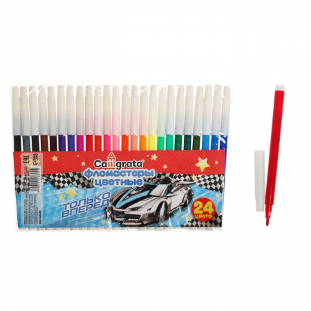 Фломастеры 24 цвета «Машинка», невентилируемый колпачок (арт. 1014669)