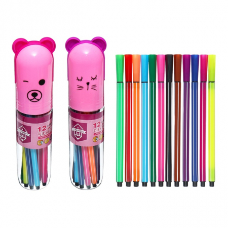 Фломастеры 12 цветов «Мишка/Киска», в розовом тубусе, МИКС (арт. 10517904)