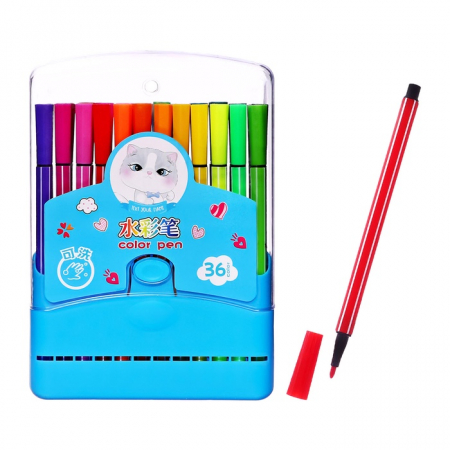 Фломастеры 36 цветов Полоска в пластиковом пенале вентилируемый колпачок, голубой (арт. 10710142)