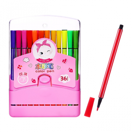 Фломастеры 36 цветов Полоска в пластиковом пенале вентилируемый колпачок, розовый (арт. 10710141)