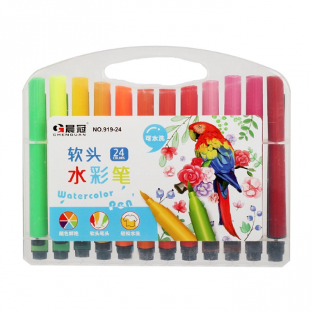 Фломастеры 24 цвета, в пластиковом пенале, треугольные, утолщённые, вентилируемый колпачок, МИКС (арт. 2870488)