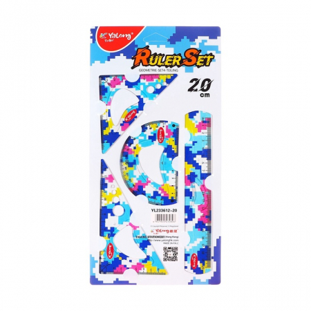 Набор геометрический пластик (линейка 20см+2 угольника+транспортир) Пиксели (арт. 10553232)