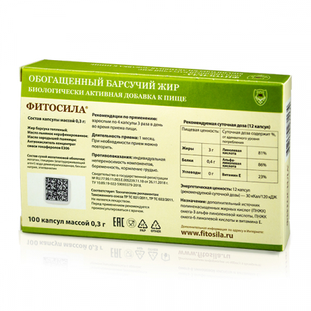 Барсучий жир обогащенный (100 капсул) - эффективный препарат, который прошел клинические исследования и соответствует требованиям ГОСТ.
