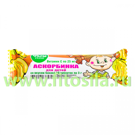 Аскорбинка для детей со вкусом банана 3,0 г №10 БАД "Фармгрупп" (арт. 105607)