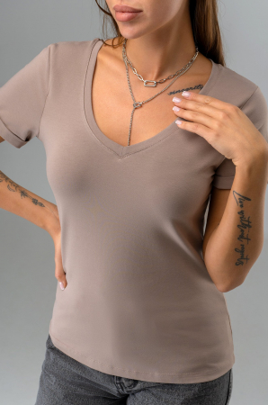 Однотонная футболка с V-образным вырезом – база, которая выручит при создании любого образа!