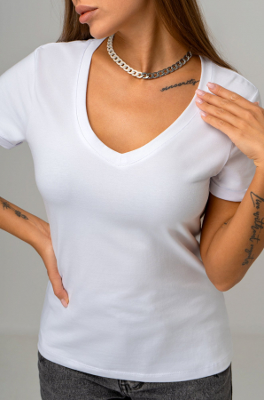 Однотонная футболка с V-образным вырезом – база, которая выручит при создании любого образа!
