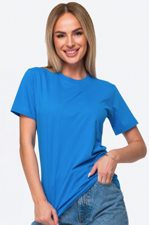 Однотонная женская футболка – тот случай, когда не нужно придумывать, что надеть. Голубая футболка универсальна. Классическая модель с коротким рукавом выполнена из натурального 100% хлопка.