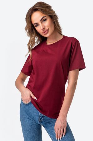 Однотонная женская футболка – тот случай, когда не нужно придумывать, что надеть. Бордовая футболка универсальна. Классическая модель с коротким рукавом выполнена из натурального 100% хлопка.