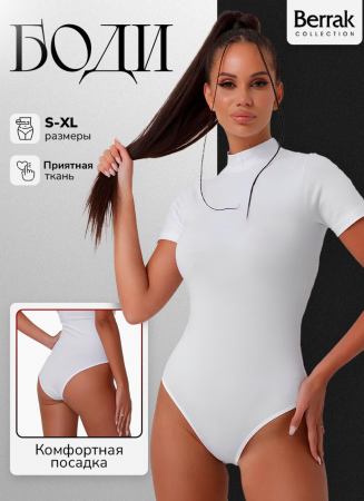 Женское боди Berrak с коротким рукавом и воротничком-стойкой. Застежка на крючках. Боди изготовлено из 95% хлопка и 5% эластана.