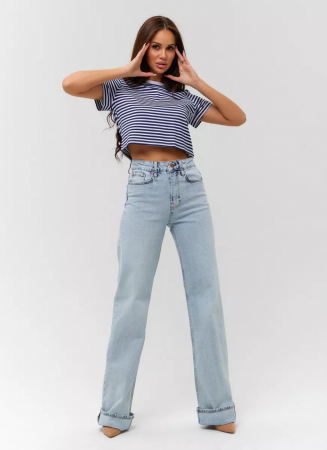 Широкие джинсы-трубы или wide leg женские джинсы с высокой посадкой и подворотами — модные прямые широкие джинсы, которые подойдут для любого образа.